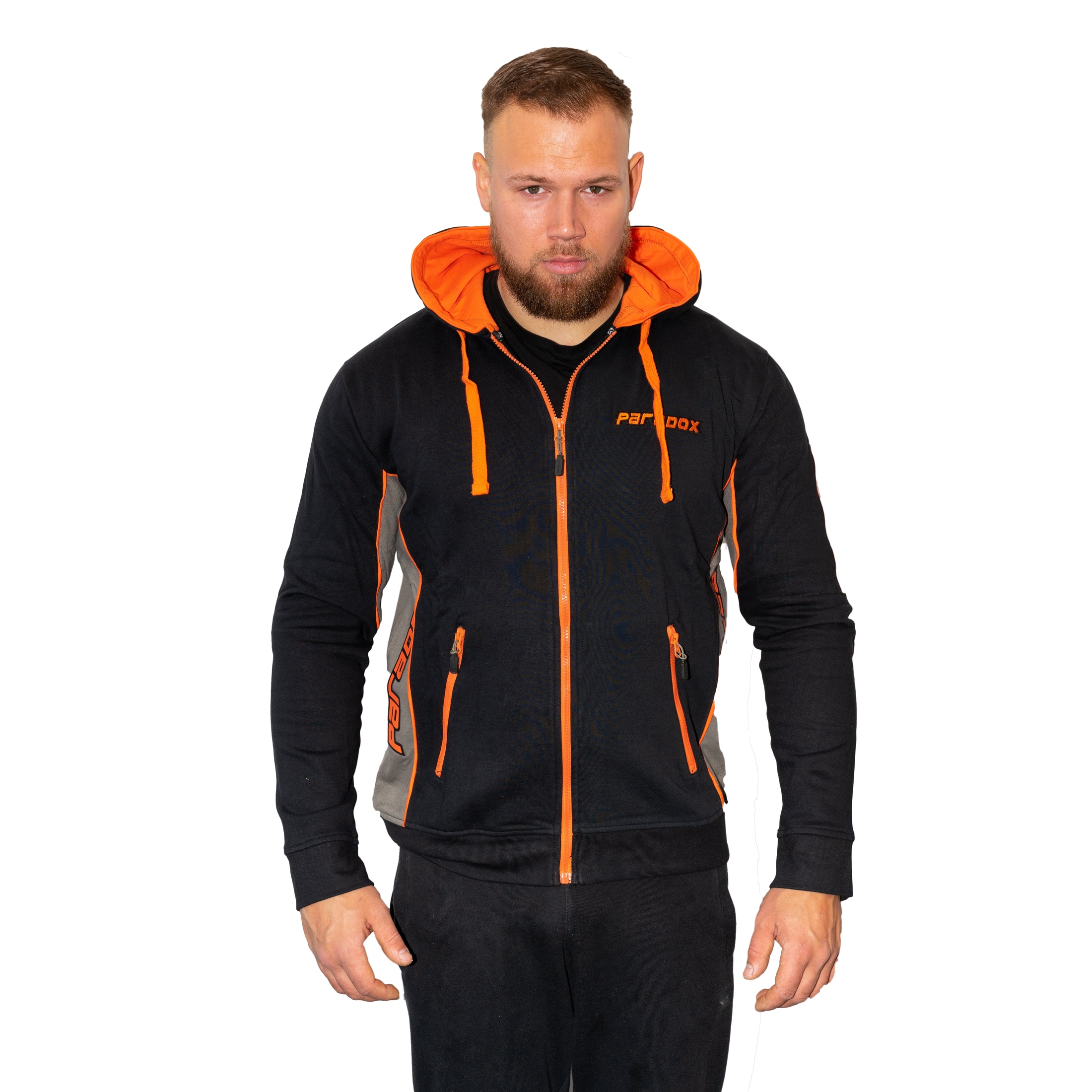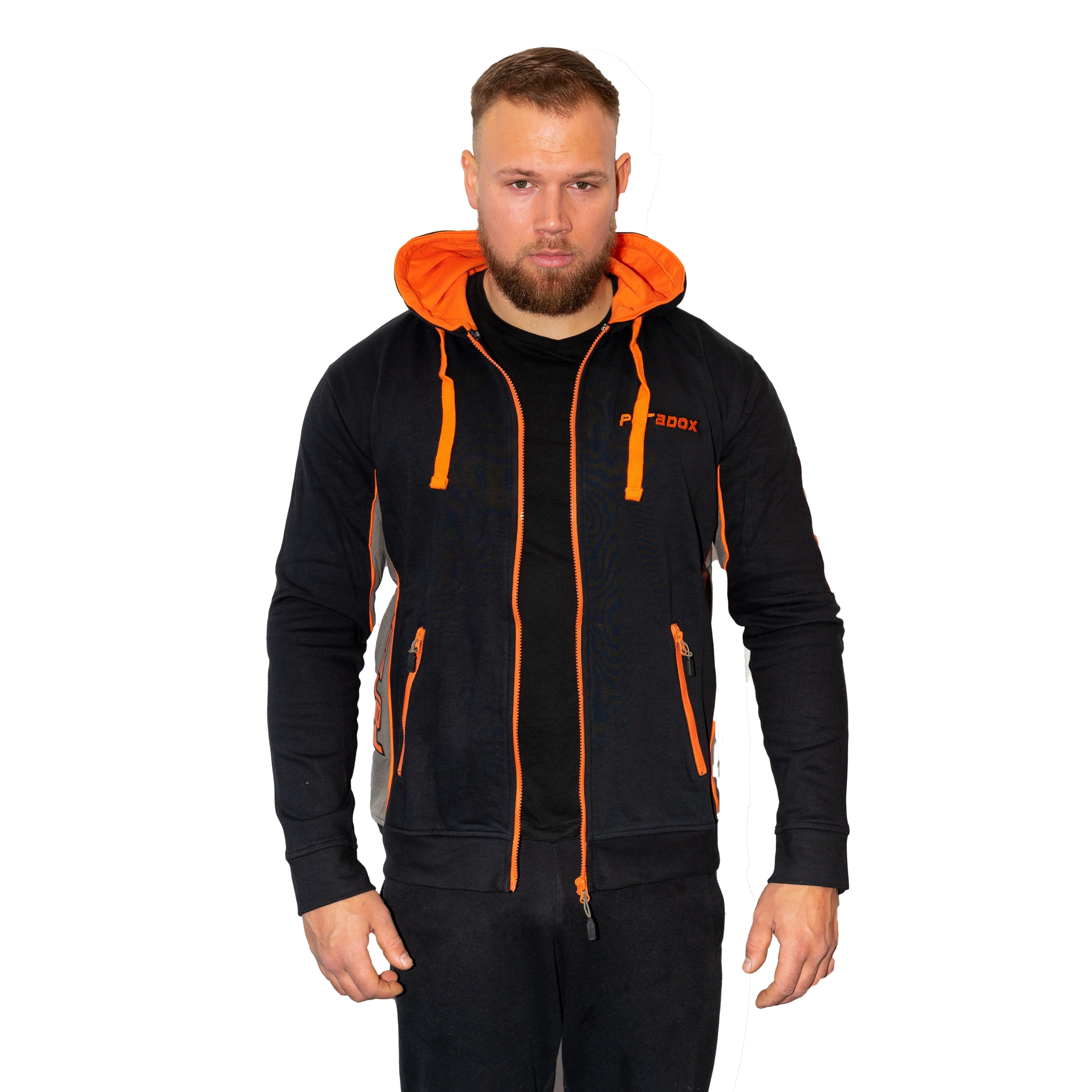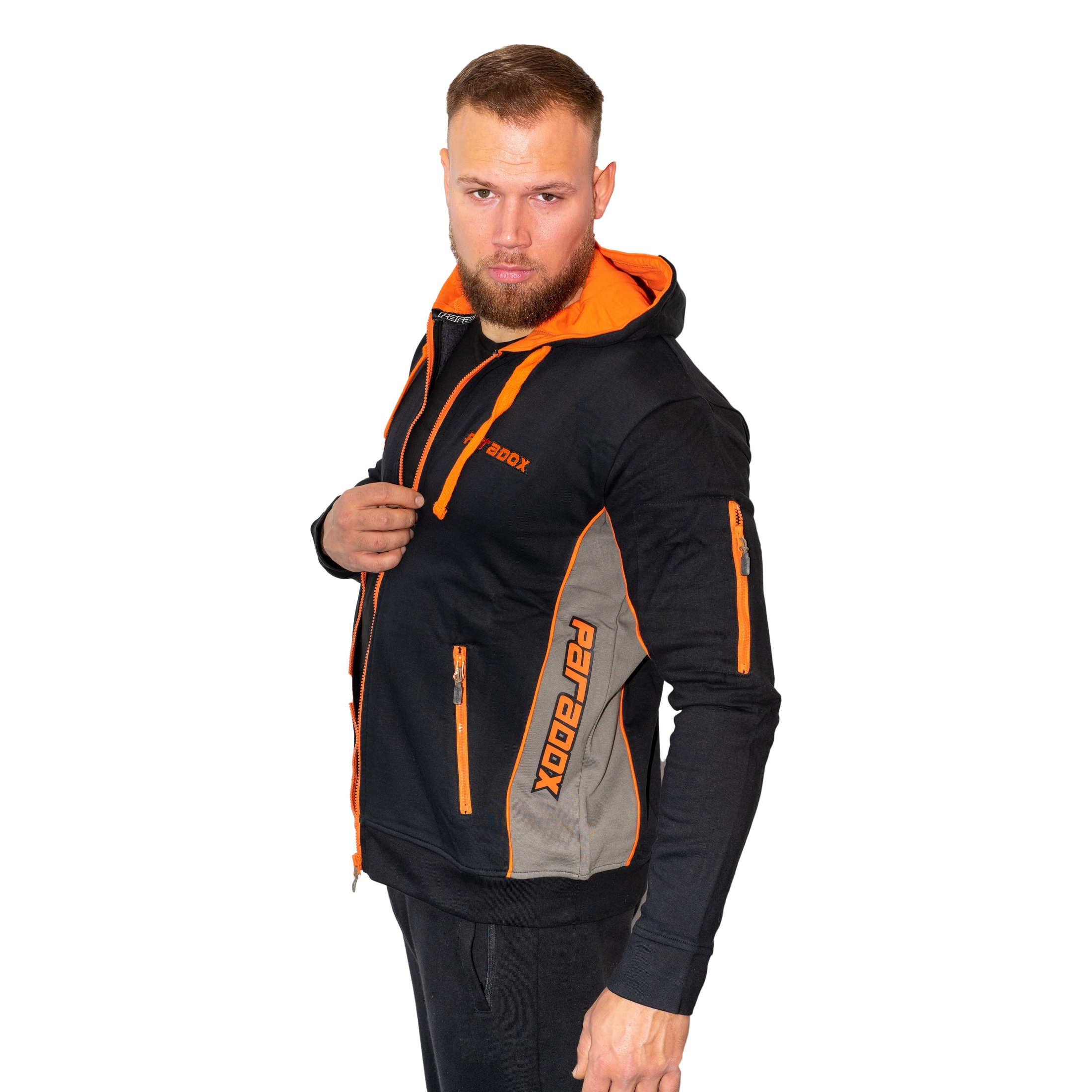 Hættetrøje – Lynlås | Sort/Orange