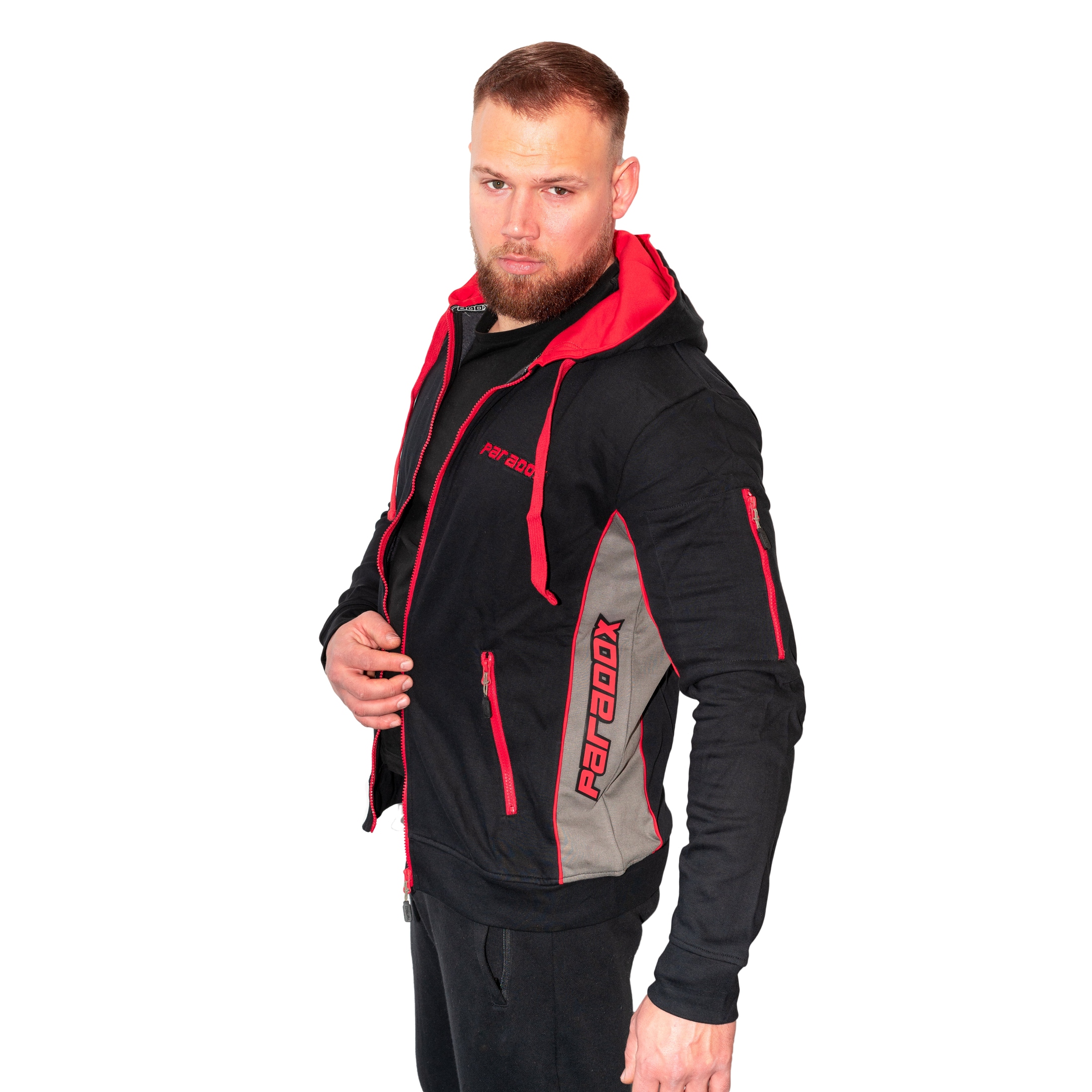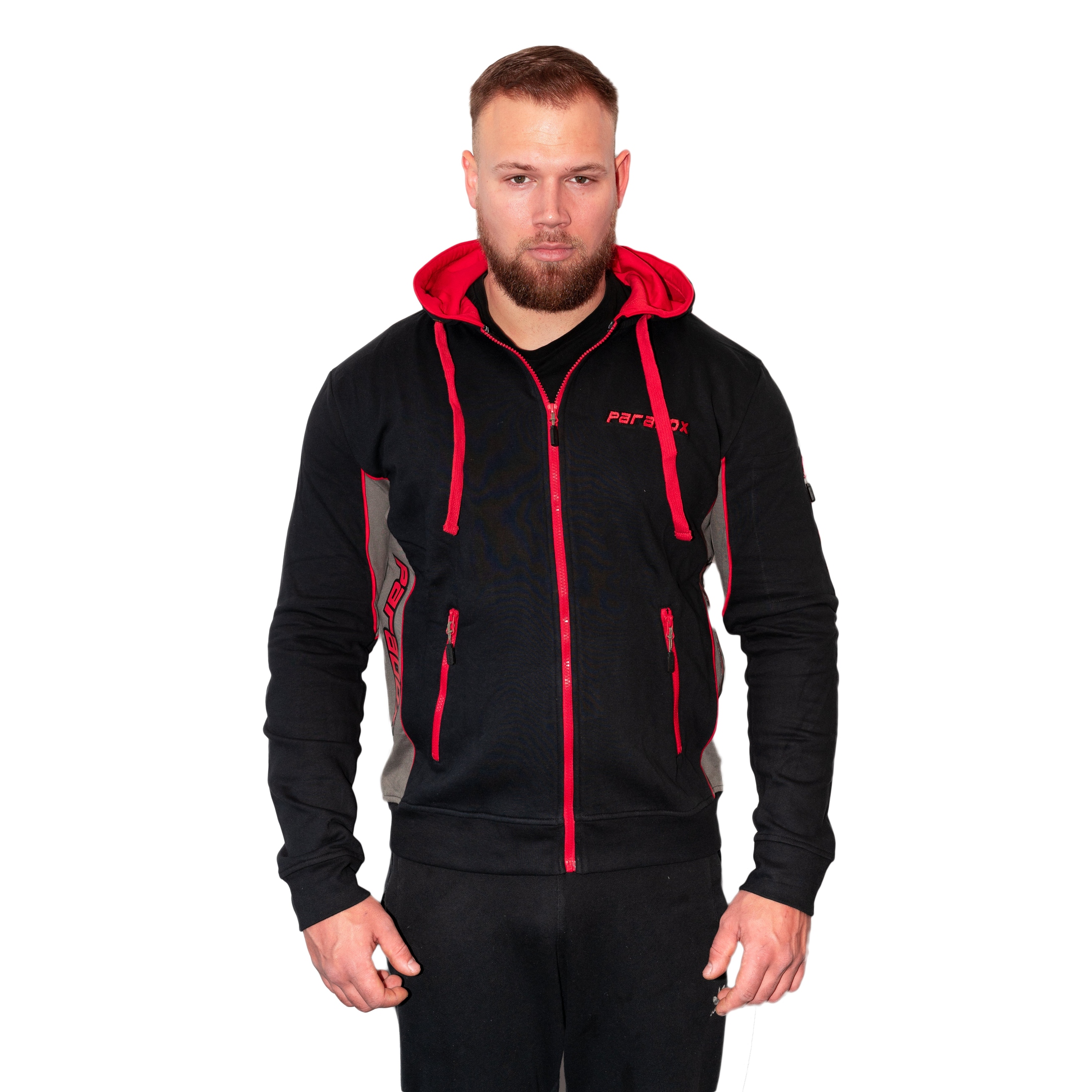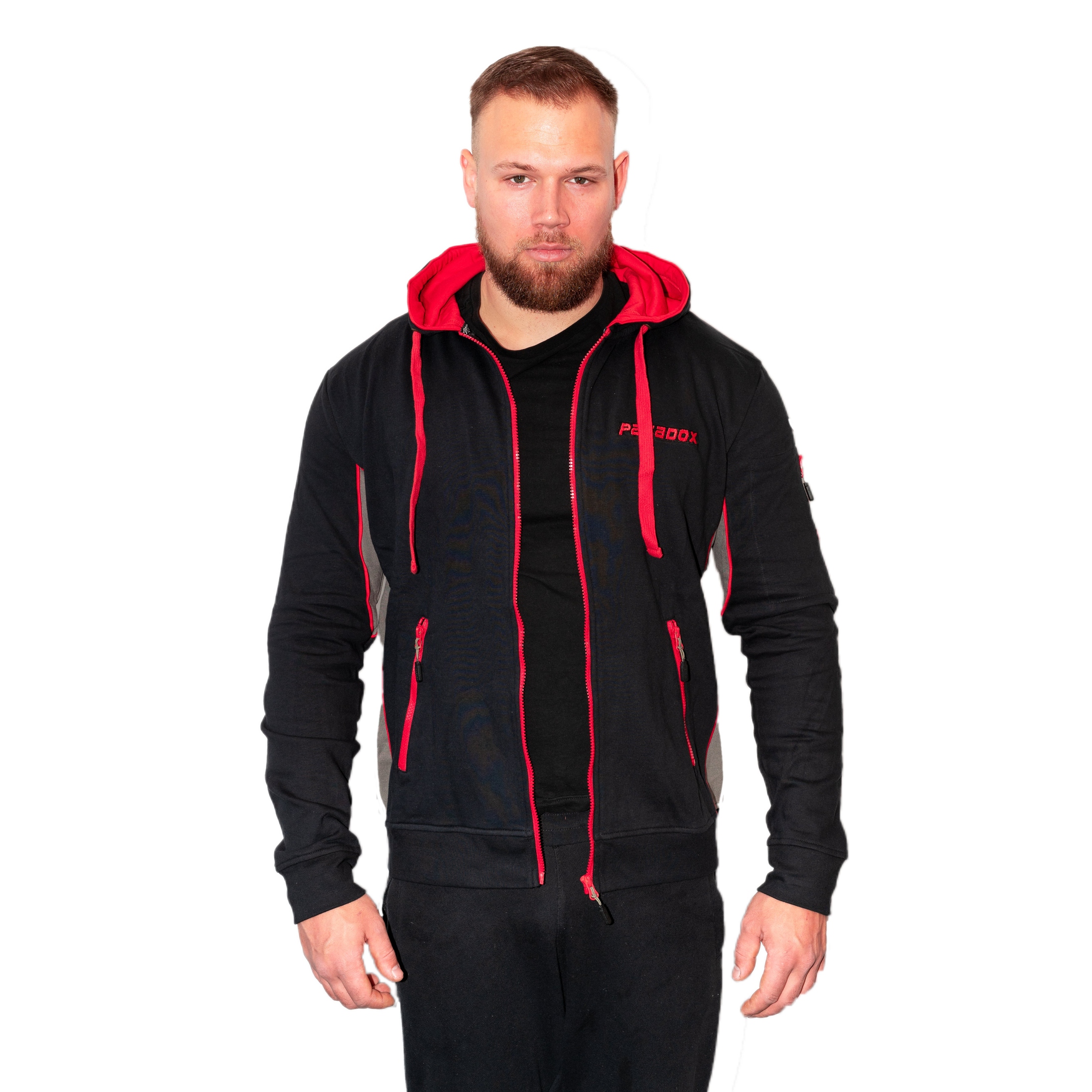 Hættetrøje – Lynlås | Sort/Rød