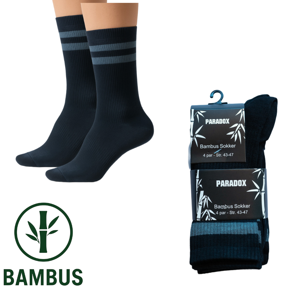 Tennissokker – Bambus | Sort m. Grå striber (4 par)